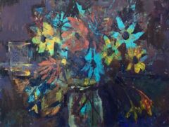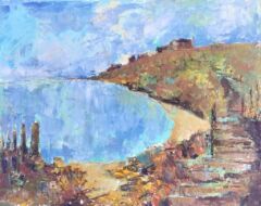 Of her background in Art Mimi writes: “Although I went to Hull College of Art, studying Ceramics and Lithography, then to Leeds College of Art for my Teaching certificate, I didn’t really do any painting. Four children and part-time teaching meant that it wasn’t until I moved to Leven in 1988  that I  had time to think – what now?
